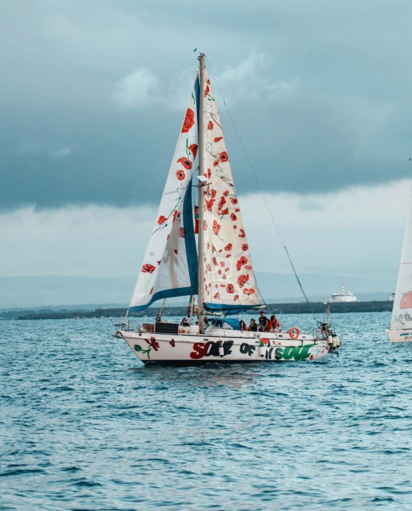 Ce bateau est aussi dédié à tous les athlètes palestiniens ciblés systématiquement par le régime dans l’objectif d’effacer les palestinien.nes des compétitions sportives internationale.
