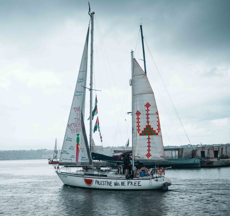 Nommé d’après la militante palestinienne Leila Khaled, symbole de la résistance palestinienne et de la lutte mondiale pour la justice, ce bateau rend hommage aux innombrables femmes qui sont à l’avant-garde des mouvements de libération dans le monde entier.